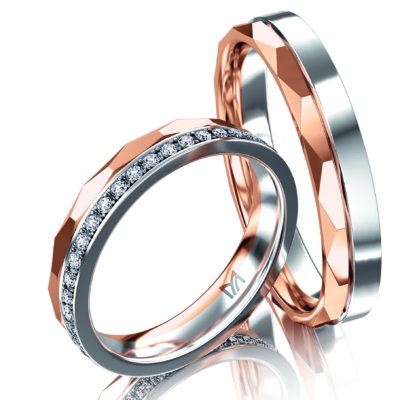 Alliances en platine et or rose 750, sertie de 41 diamants 39 ct G-VS tout le tour.